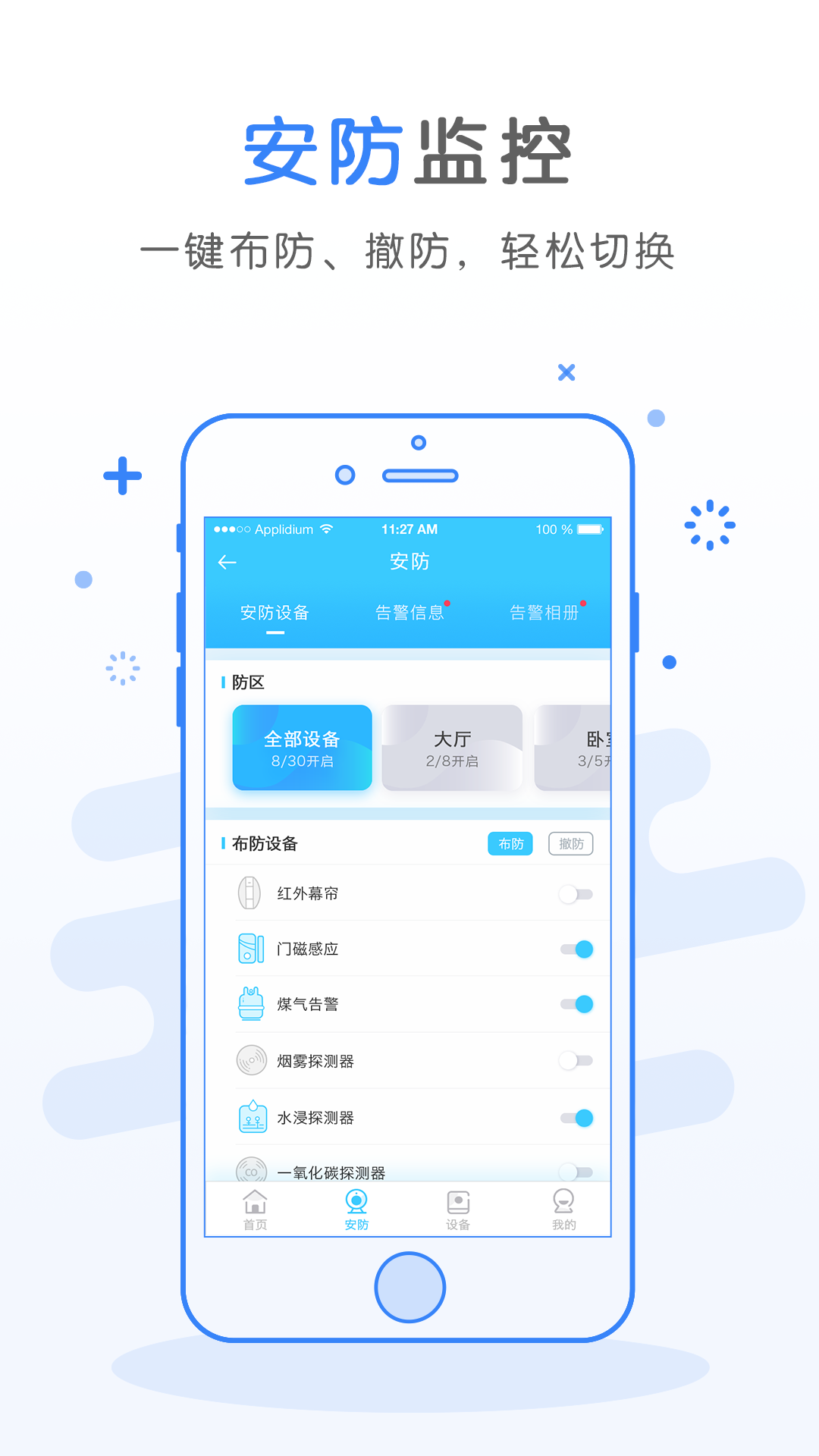安防监控功能强大,支持一键布防、撤防,轻松切换不同安全模式,让您随时掌握家中安全动态。设备兼容性极佳,支持多种智能家电的快速接入和精准控制,满足不同家庭的多样化需求。个人我的功能提供个性化设置选项,轻松管理家庭成员的控制权限,确保智能生活的私密性和安全性。此外,界面设计简洁直观,操作流畅,即使是初次使用智能家居的用户也能快速上手。
