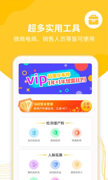 检测清理僵尸粉,自动查找清除中已经拉黑或者删除你的人,从此释放您的双手;智能分析功能可以准确识别无效好友,避免资源浪费。做你的微商助手,还有更多专为微商定制的功能,让你在微商的道路上从此不再孤单;包括客户画像分析、营销效果追踪等专业工具。微商工具,能快速让您获得大量优质的客源,支持一键消息群发,让你轻松玩转商品发布;精准的客户定位系统帮助您找到最有价值的潜在客户。