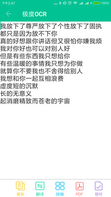 在最新发布的稳定版中,极度OCR新增了多项实用功能并进行了多项优化。新增的PDF导出功能让用户可以直接将识别结果保存为PDF格式,方便文档的分享和存档。开发团队修复了离线库下载错误导致的闪退问题,提升了软件的稳定性。新增的图片核对功能让用户可以直观地对比原始图片和识别结果,确保信息的准确性。内容提供器的加入实现了全局分享调起极度OCR在线识别的功能,大大提升了使用便捷性。此外,开发团队还修复了侧滑开启时按返回键退出程序的BUG,并对多项细节进行了优化。我们衷心感谢广大用户的支持,极度OCR团队将继续努力,为用户带来更好的使用体验!