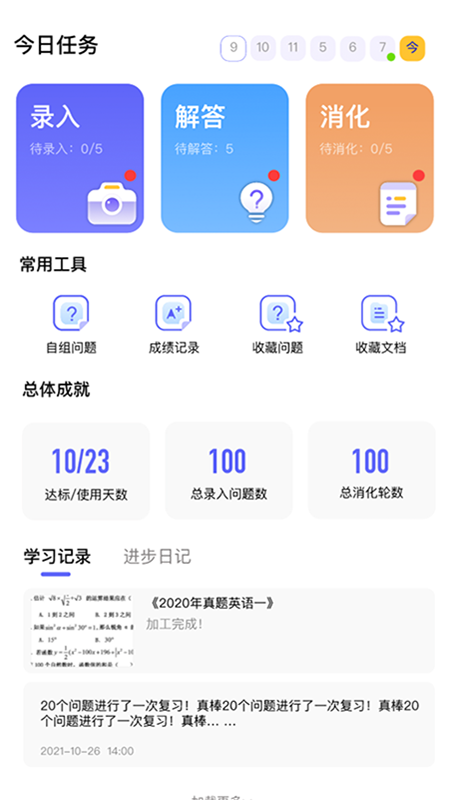 进步本,是一个可以让你成为学霸的神奇APP!它不仅是一款学习工具,更是一个改变学习方式的革命性平台。通过科学设计的【录题】,【解答】,【消化】三大核心功能,建立起完整的【有序学习】进步循环,帮助用户培养高效自主的学习习惯。在这里,每一次学习都能转化为可见的进步,让知识真正内化为自己的能力。