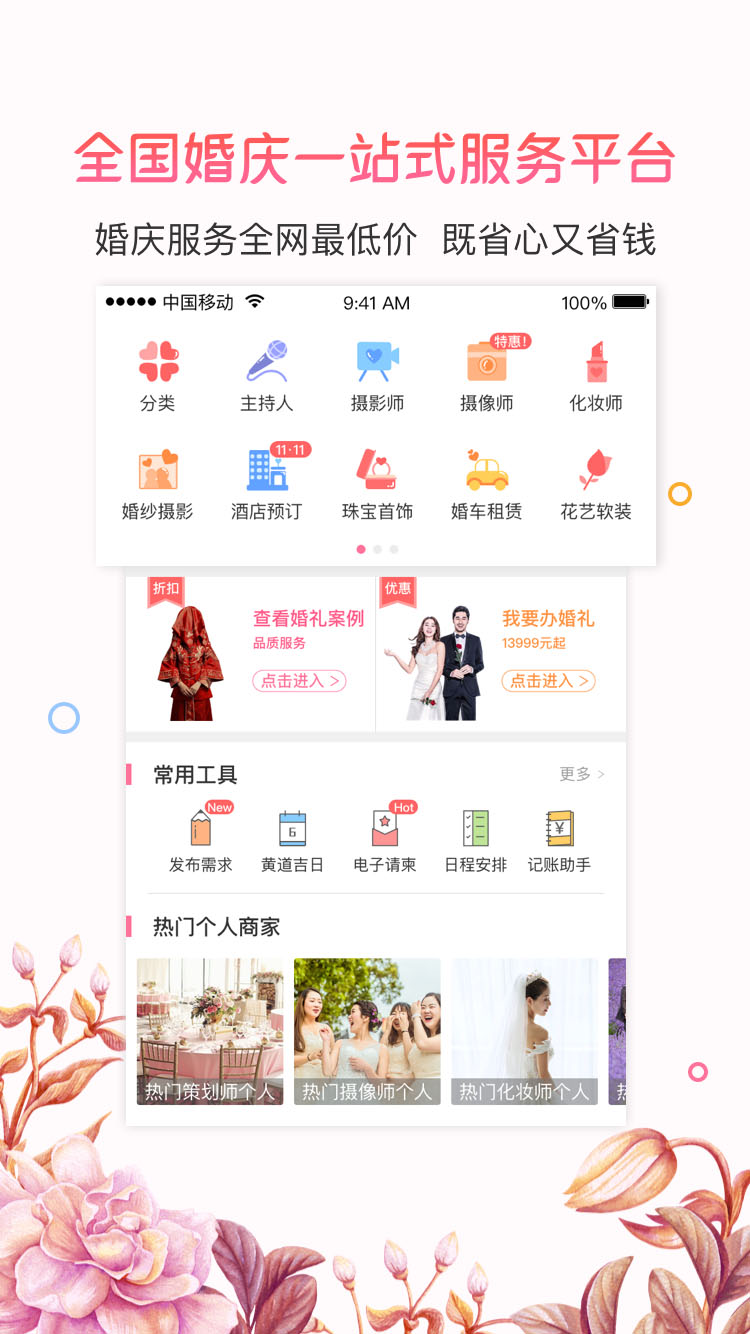 喜GO是一款专注于婚嫁服务的移动应用平台,致力于为新人们提供全方位、高品质的婚礼筹备解决方案。这款app整合了全国上万家经过严格筛选的优质婚嫁服务商家,涵盖婚礼策划、婚纱摄影、婚宴预订等各个环节,真正实现了一站式婚嫁服务体验。无论您身处哪个城市,都能通过喜GO轻松找到最适合的婚礼服务资源,让您的婚礼筹备过程更加省心、高效。