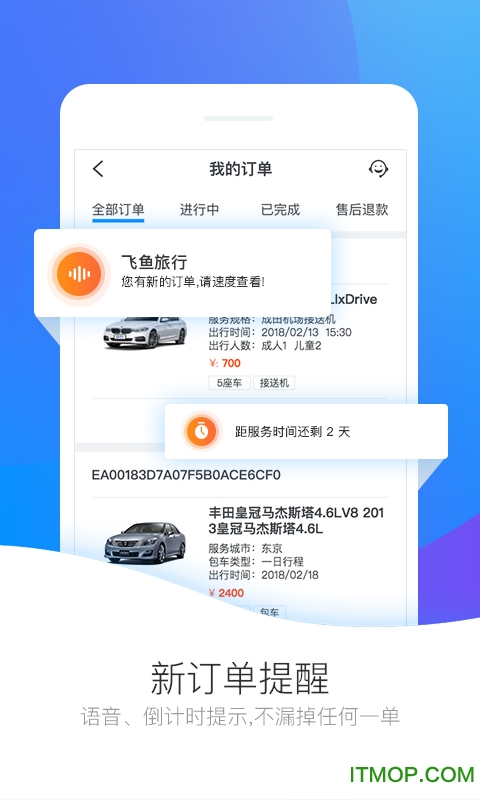 会长管理系统让团队管理更高效,新增的会展功能可一键查看团队业绩和派单情况。智能派单系统通过飞鱼旅行后台精准匹配订单,确保每位司导都能获得充足的工作机会。多重订单提醒功能包括语音播报、弹窗提示和震动提醒,彻底解决漏单问题。服务上传功能经过全面优化,支持快速编辑、复制和上下架操作,让您的服务展示更加灵活便捷。