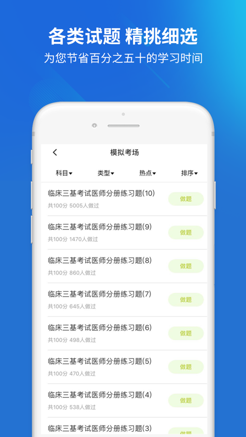 医院三基考试app是一款专为医疗从业人员设计的综合性学习与备考工具,旨在帮助用户高效掌握医院招聘考试所需的专业知识和技能。作为一款功能强大的医院招考技能考核学习助手,该软件不仅拥有海量题库资源,还提供智能搜题、多样化练习模式等实用功能,让用户能够系统性地提升专业水平,轻松应对各类医院三基考试。