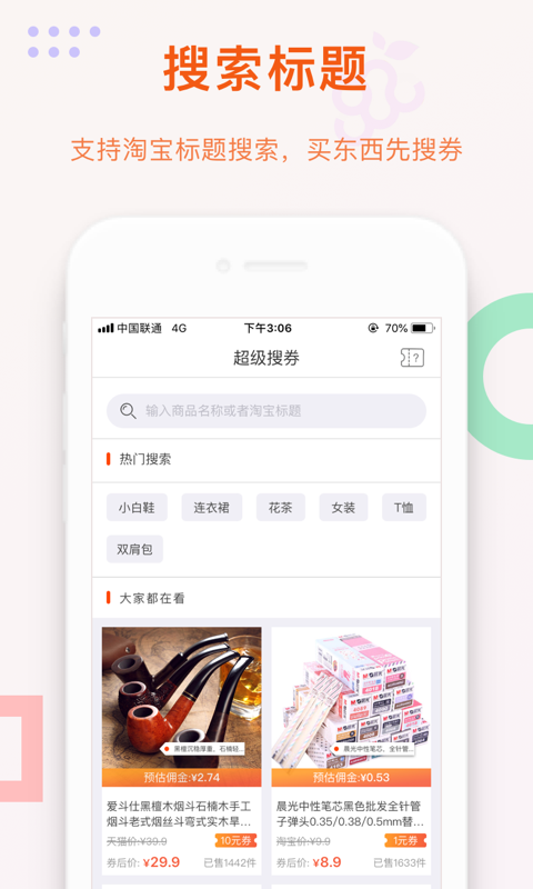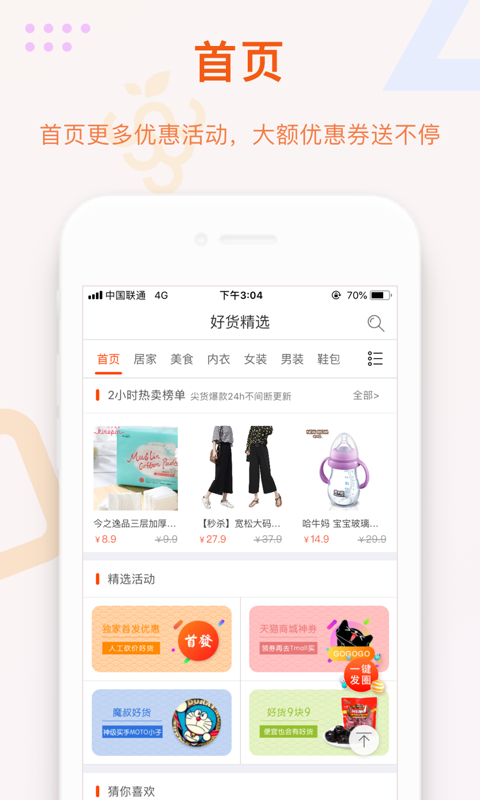 分享赚钱功能让您轻松实现被动收入,只需将好货分享给朋友,双方都能获得现金奖励;省钱快报功能提供最新优惠信息,先领券再下单,购物更划算;限时降价专区每天更新精选商品,闪电降价让您抢购更痛快;优质好货专区由专业买手严格把关,确保每件商品都物超所值;每日上新栏目持续更新各类优惠券,从日常用品到顶级尖货一应俱全;超级搜券功能让您轻松找到全网优惠券,通过关键词搜索即可享受专享折扣;限时抢购活动每天多场次进行,提供丰富选择,让您不错过任何优惠机会。