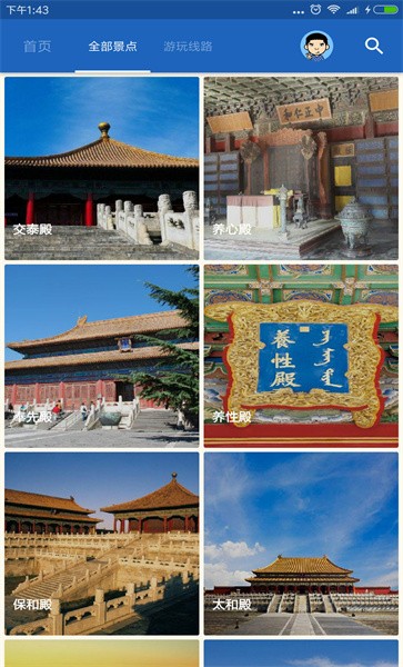 精美日历信息页面让您随时掌握故宫开放时间和特别活动安排。心情笔记记录及分享功能提供多种充满艺术气息的分享模板,让您轻松记录旅行感受。故宫博物院馆藏每日撷珍功能展示各领域2265件珍贵文物及代表作品,带您领略中华文化瑰宝。详细解读部分文物工艺要点及背景故事,让文物背后的历史更加生动。高清文物细节图片欣赏功能让您能近距离观察文物的精美细节,感受传统工艺的魅力。