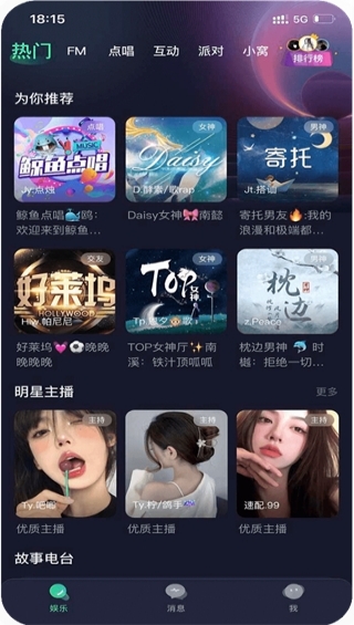 平台最具特色的就是多人语音聊天室功能,你可以通过声音结识更多有趣的灵魂。无论是想语音连麦、恋爱相亲、寻找CP,还是收听甜蜜电台,这里都能满足你的需求。偷星猫App已经成为年轻人线上社交的新宠,是举办嗨聊派对的绝佳场所。此外,你还可以创建专属的同城小窝房,邀请好友、CP、死党或闺蜜一起听音乐、玩游戏。作为房主,你可以完全掌控房间的氛围和节奏。