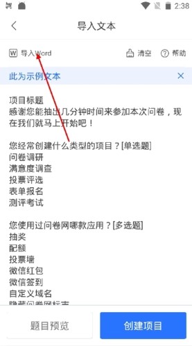 使用问卷网导入Word文档非常简单。首先打开问卷网APP,点击首页下方的"+"号按钮创建新问卷。在弹出的菜单中选择"导入文本"选项,系统会提示您选择需要制作的问卷类型。确认类型后,点击页面左上角的"导入Word"功能按钮,从手机本地文件中选择要导入的Word文档即可。导入完成后,系统会自动识别文档内容并转换为问卷格式,您可以在此基础上进行进一步编辑和完善。