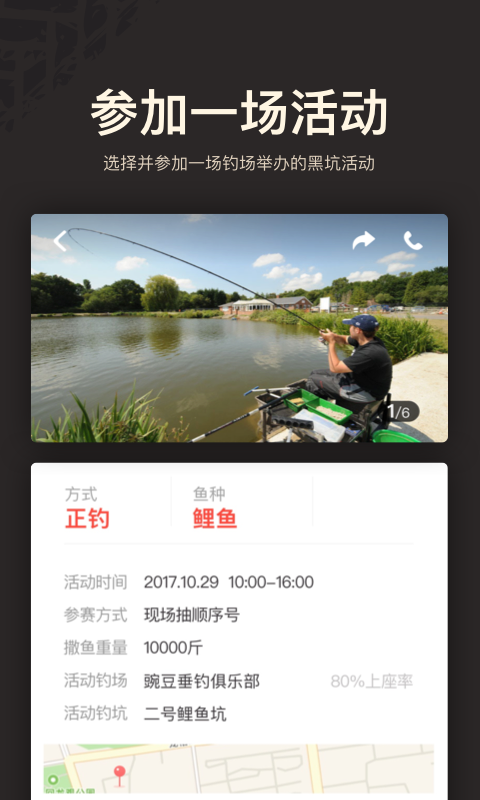 在微钓app可以选择并参加钓场举办的黑坑活动,还能结识志同道合的钓友。平台会定期更新全国各地优质钓场的活动信息,让你不错过任何精彩赛事。