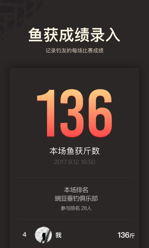 微钓app会记录钓友的每场比赛成绩,方便查询。系统会自动生成详细的数据分析报告,帮助你了解自己的进步轨迹,还能与好友一较高下。
