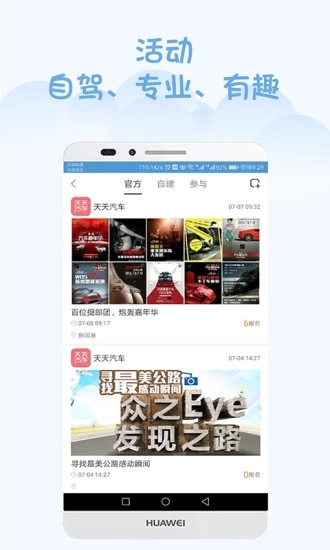 作为全国车友活动的聚集地,汽车社团app总能为您带来惊喜。这里有各式各样的精彩活动,总有一款适合您的口味。从有奖组团自驾游到专业驾控培训,从汽车知识讲座到赛道体验日,平台为您准备了丰富多彩的活动选择。无论您是想要结交新朋友,还是提升驾驶技术,都能在这里找到心仪的项目。
