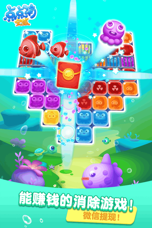 豆子世界点点消宝藏破解版是一款充满童趣的休闲消除游戏,采用清新可爱的卡通画风,搭配简单易上手的点消玩法,让各年龄段的玩家都能轻松享受游戏乐趣。游戏创新性地融入了宝藏玩法系统,玩家在闯关过程中不仅能体验消除的快感,还有机会获得丰厚红包奖励。独特的道具系统和多样化的关卡设计,为传统消除游戏注入了新鲜血液,特别是动态海底世界的场景设计,让玩家仿佛置身于梦幻的海洋王国。