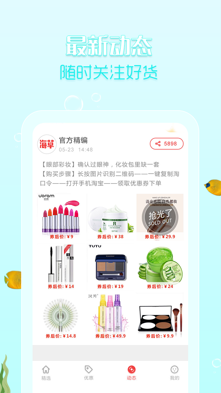 海草街-美好生活,省心。一款购物优惠返利APP,新用户免费领红包奖励,淘宝天猫京东大额优惠券,先免费领券再下单,再轻松拿返利,省钱省时间!每日精选特卖,花最少的钱,买好的商品。领券抵现金,比淘宝直接买更好省,每单都有返利,分享还能赚钱,天猫分享给好友,好友通过免费领优惠券更省钱,分享者获得收益,边买边省;海草街邀请赚限时免费开放,0投入、在家轻松躺赚上千元,让你少花钱、多生钱!此外,海草街还提供独家折扣和限时秒杀活动,让您享受更多购物乐趣。无论是日常用品还是潮流单品,这里都能满足您的需求。