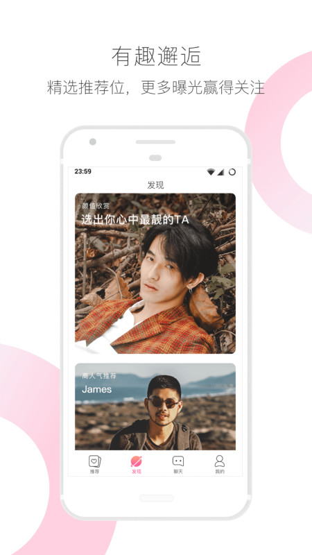 「颜值高」小半严格控制用户注册质量,网罗海量海量帅哥美女,听说颜值过低、图片质量差都无法通过审核呢~我们致力于打造一个高颜值的社交环境,让你每一次匹配都能眼前一亮。