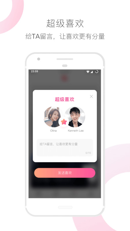「匹配容易」区别以往的“左右滑动”,向对方发送like时,还可以发送一段话or,利用这宝贵搭讪机会抓住ta的心吧!独特的互动方式让匹配更加精准,告别无效社交。