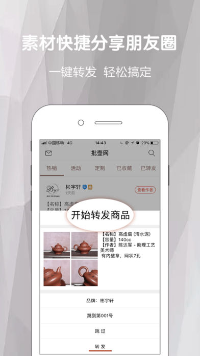 批壶网app集成了多项实用功能,助力用户轻松开展紫砂壶业务。通过快捷转发功能,您可以将商品素材和精美文案一键分享至朋友圈,实现高效售卖。职称查询功能为您整理了制壶大师的最新职称信息,方便您随时了解他们的代表作品。分销中心则为您提供了邀请分享赚取佣金的渠道,让推广变得更加有利可图。我们的愿景是让寻找优质紫砂壶的过程变得更加简单、高效,为每一位用户创造更多价值。