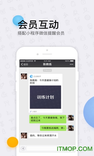会员互动,搭配小程序微信提醒会员,及时推送课程变更和训练建议;