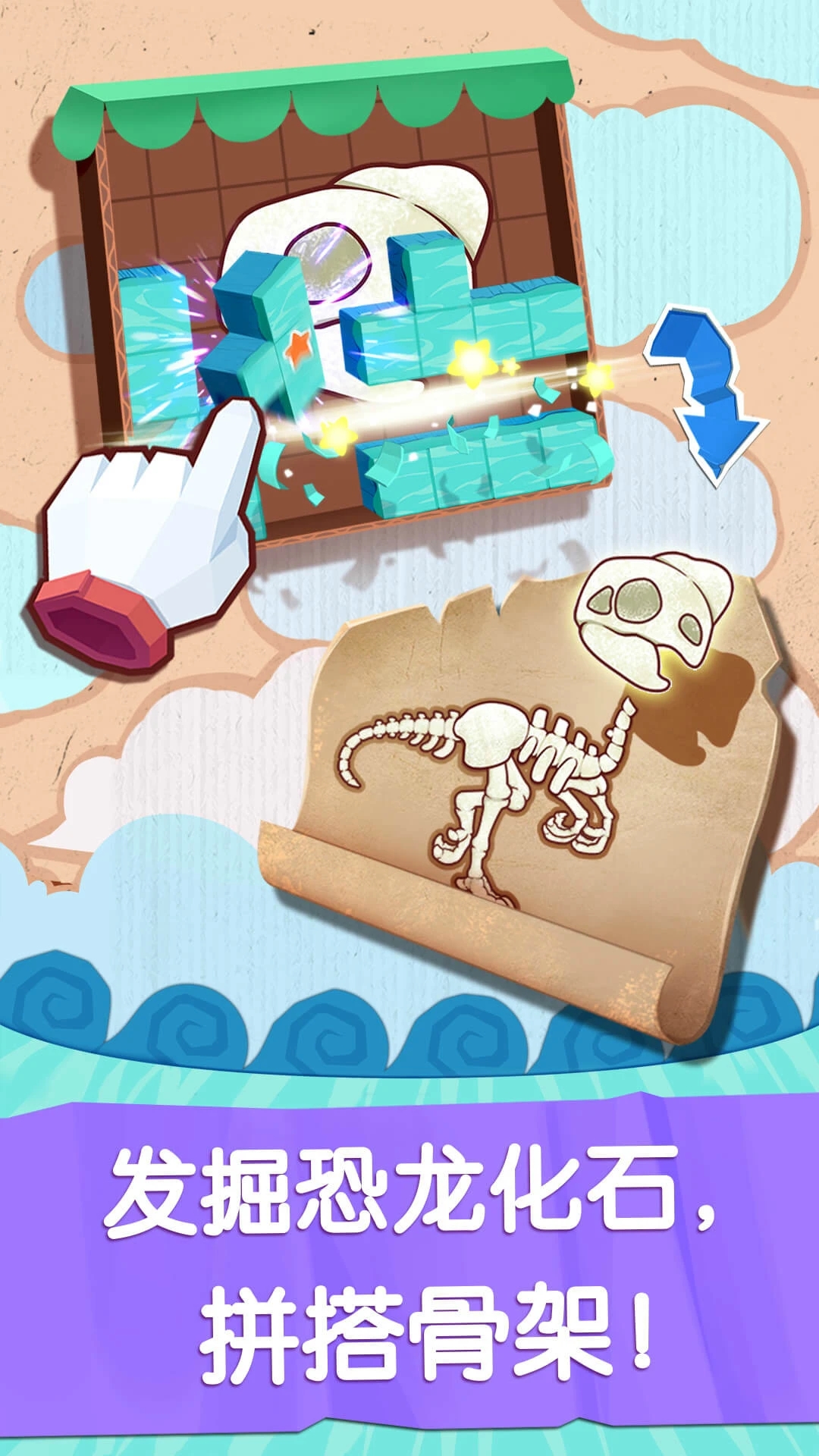 【复活恐龙】创新的拼图玩法让孩子们亲手复原恐龙化石。通过简单的拖拽操作,见证史前巨兽重获新生的神奇过程,增强孩子的成就感。