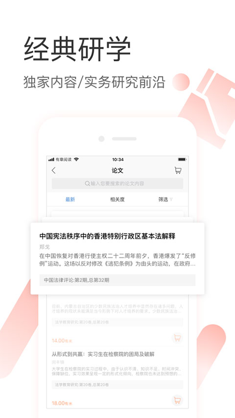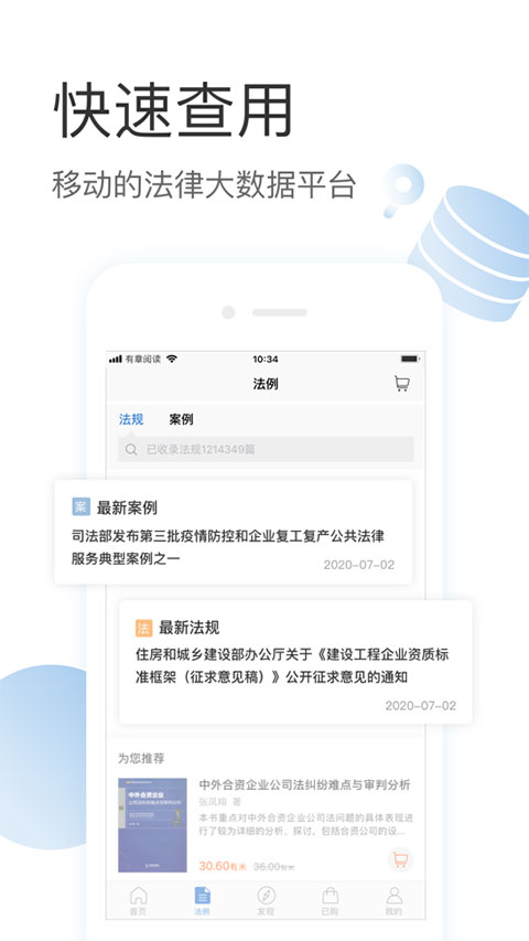 依托移动支付、大数据和人工智能等前沿技术,有章阅读实现了对出版社资源的智能化整合,打造了以免费法规查询、案例分析和专家咨询为核心的服务体系。平台以专业图书、学术论文、权威观点和法律百科为主体,构建起综合性法律知识服务平台。秉承"有章、有法、有思享"的理念,基于法律大数据与AI技术,为用户提供全面、精准、高效的一站式解决方案。同时,app致力于传播法律思想,让法律知识真正服务于人民大众。
