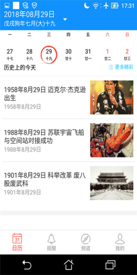 资讯频道:软件内置了丰富的资讯频道,包括"历史上的今天"、"每日一言"等特色栏目,还有各类新闻资讯可供订阅。用户可以根据个人兴趣自由选择内容,让日历应用变得更加丰富多彩。
