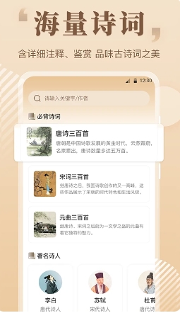 古典文学爱好者也能在这款软件中找到丰富的学习资源。软件收录了大量唐宋诗词名篇,每首诗词都配有详细的注释、译文和赏析。通过这些解析,用户可以深入理解古典诗词的意境和内涵,提升文学素养。