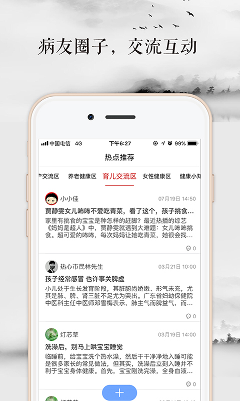 打造专业中医社区,汇聚名老中医、养生达人、康复病友等各类用户。在这里可以分享治疗心得、咨询健康问题、参与话题讨论,形成互帮互助的健康交流平台。