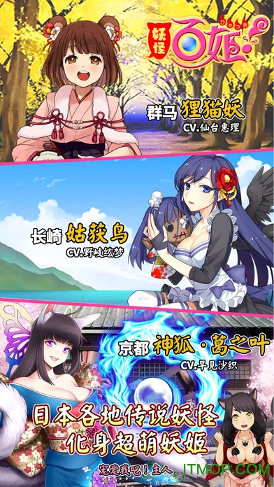 《妖怪百姬》是日本角川美少女系列新作,延续了该系列一贯的高水准美术风格。「萌娘化」演绎,将古代日本47个都道府县的传说妖怪,幻化成萌萌的美少女,每个角色都经过精心设计。日本绘师群生动描绘数百个养眼的妖姬角色,从服饰到表情都极具特色。快和她们来一场心跳加速的冒险之旅!