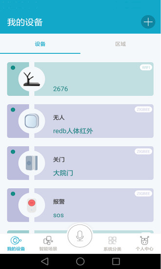 【我的设备】功能模块提供了强大的设备管理能力,支持添加和控制多种类型的智能设备,包括WIFI智能设备、433智能设备、萤石摄像头、Zigbee设备、智能管家等。目前系统已兼容超过50种主流智能设备,覆盖了照明、安防、环境监测等多个家居场景。用户可以通过直观的界面轻松管理所有设备,实现一键控制。