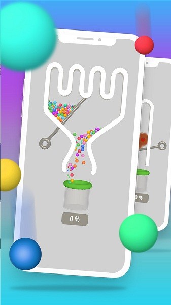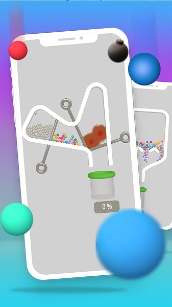 玩家需要通过精准拔除签子,引导彩色小球沿着精心设计的隧道顺利落入底部收集瓶;面对数量众多的小球,必须谨慎规划拔签顺序,避免小球意外流失;随着关卡推进,游戏会引入更多复杂机制,如无色小球需要先染色再引导;成功完成关卡后,玩家将获得丰厚奖励用于解锁新内容;游戏还设有特殊挑战模式,让玩家在限定条件下测试自己的极限操作能力。