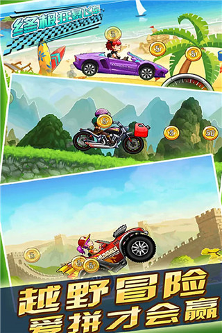 终极狂暴飞车游戏是一款充满速度与激情的赛车冒险手游,玩家将驾驶专属赛车穿梭于多样化的奇幻赛道。从幽深古墓到广袤沙漠,从神秘金字塔到葱郁丛林,每个场景都暗藏惊喜与挑战。在疾驰过程中,你需要灵活躲避障碍陷阱,收集沿途金币来升级爱车性能。游戏赋予玩家绝对自由,既可体验肾上腺素飙升的极速狂飙,也能放缓节奏欣赏沿途绝美风光。精心设计的特殊地形系统让你在嶙峋山石间漂移,在黄金铺就的古墓通道中探险,更有祖国大好河山的壮丽景观等你来征服。