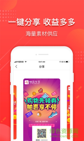 一键分享,收益多多,海量素材供应,提供精美的商品海报和推广文案
