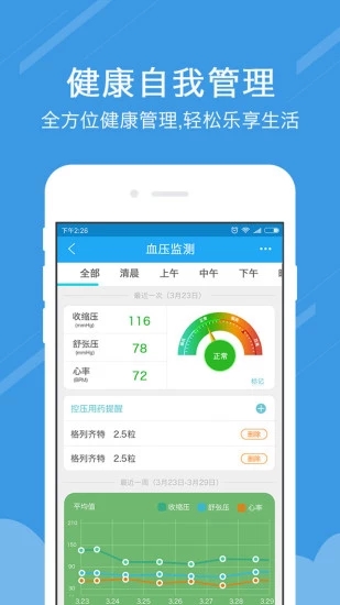 智能硬件设备管控慢病:健康淮阴app支持与多种智能健康设备(如血压计、血糖仪、心电仪、体脂体重称等)的蓝牙连接,实时存储和分析健康数据,生成详细的报告,帮助用户动态监测健康状况,及时发现潜在问题。