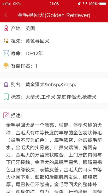 犬种百科资料:详细记载每个犬种的起源地、血统祖先、平均寿命、智商排名、别名等专业信息,帮助您深入了解爱犬。