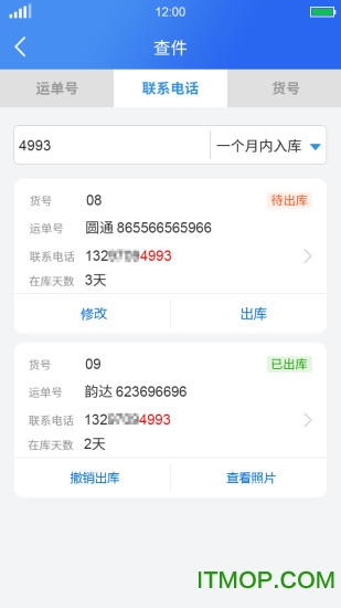 查件服务:提供多种查询方式,包括手机号、运单号和货号查询,支持扫码和手动输入两种模式。查询结果精准可靠,并可直接进行修改和出库操作,大大节省了查找包裹的时间。