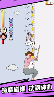 《有种上天啊》是一款充满恶搞精神的魔性休闲游戏,灵感来源于网络热梗"抱紧大根"。游戏中你将扮演一位执着的大叔,目标只有一个——不断向上攀爬!游戏采用清新明快的卡通画风,搭配洗脑的BGM,营造出令人捧腹的搞笑氛围。看似简单的操作背后,却隐藏着极具挑战性的物理机制,你需要精准控制大叔避开各种奇葩障碍,体验从天堂到地狱的瞬间转换。这款游戏不仅能让你开怀大笑,还能测试你的反应极限,快来帮助大叔完成这场荒诞又刺激的逃亡之旅吧!
