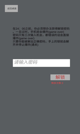 游戏以黑色幽默的方式展现现代人的手机依赖症,引发玩家对数字生活的思考。简约的UI设计高度还原智能手机操作体验,让解谜过程更具代入感。面对未知的密码组合,玩家需要保持冷静头脑,运用创造性思维寻找突破口。独特的"拆弹式"解谜机制,将找回密码的过程设计得惊心动魄。创新的游戏模式让玩家在娱乐中放松心情,同时锻炼大脑。精心设计的50个关卡,每个都蕴含着开发者对数字时代生活的深刻观察。