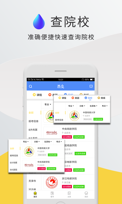 艺虫收录了全国200多所艺术类院校的详细信息,包括招生简章、专业设置、录取分数线等核心数据。平台实时更新各校最新招生政策,并提供历年艺考真题解析。通过大数据分析,我们还能为考生推荐匹配度高的目标院校,让择校决策更加科学合理。