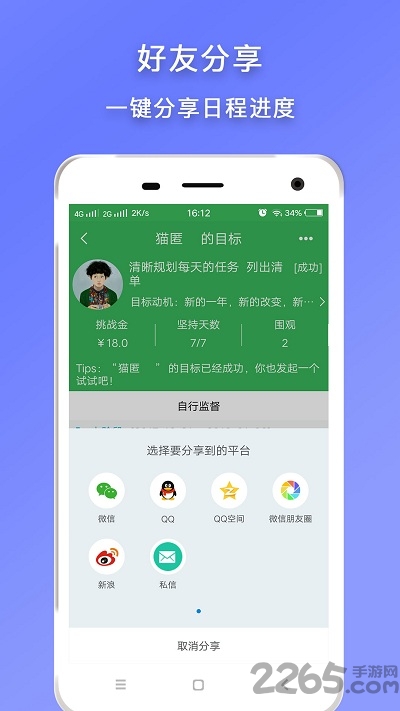 ·好友监督:创新的社交监督功能,支持邀请多位好友组成监督小组,他们可以实时查看您的任务进度并发送鼓励留言。当任务逾期时,系统会自动向监督好友发送提醒,形成双重督促机制。