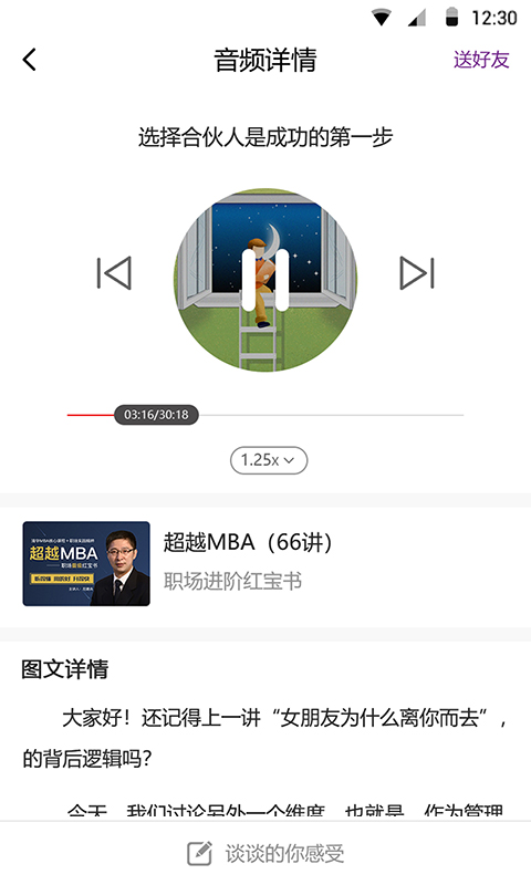 格致书院app是一款专注于知识服务的创新平台,致力于为用户打造沉浸式的听觉学习体验。在这个快节奏的时代,我们深知时间碎片化的痛点,因此精心设计了"用耳朵学习"的便捷模式,让您在通勤、健身、家务等场景中都能高效获取知识。开通VIP会员后,您将解锁更多专属权益:永久享听300+节顶级商学院MBA课程,这些课程由知名教授授课,内容涵盖前沿管理理念和实战案例;全年畅听百余本优质书籍音频,每本书都由行业专家深度解读,帮助您快速掌握核心观点;还能加入数百名职场精英组成的专属社区,与志同道合的学习者交流心得,获得职业发展建议。