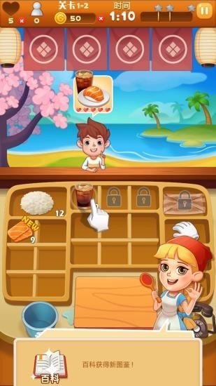 寿司厨师完整版是一款轻松有趣的模拟经营游戏,让玩家化身寿司店老板,体验制作美味寿司的乐趣。游戏中,你需要根据顾客的订单需求,精心挑选食材并快速制作出新鲜可口的寿司。寿司的美味程度会随着时间变化,因此及时为顾客奉上刚做好的寿司是关键。游戏没有复杂的操作和难度设定,让玩家在悠闲的氛围中享受制作寿司的快乐,伴随着轻快的背景音乐,仿佛置身于真实的寿司店中。