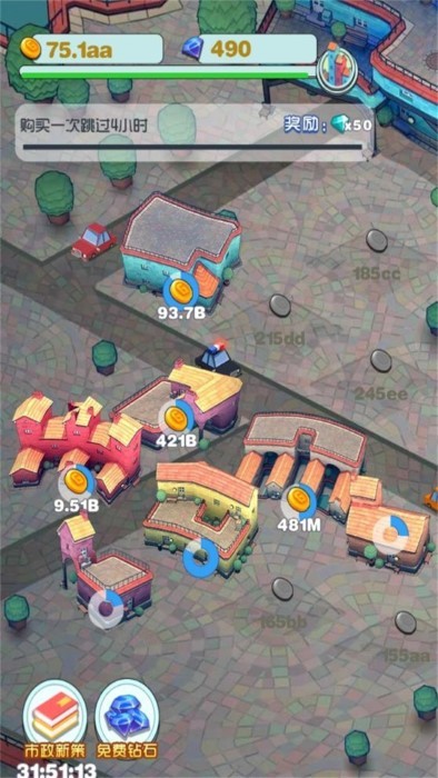 通过点击和滑动升级建筑,获得更多资金来源,解锁更高级的城市功能。