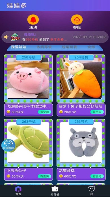 【超强榜单】实时更新的玩家排行榜,让你可以与全国高手一较高下,分享抓取技巧,争夺娃娃机大神的荣誉称号。