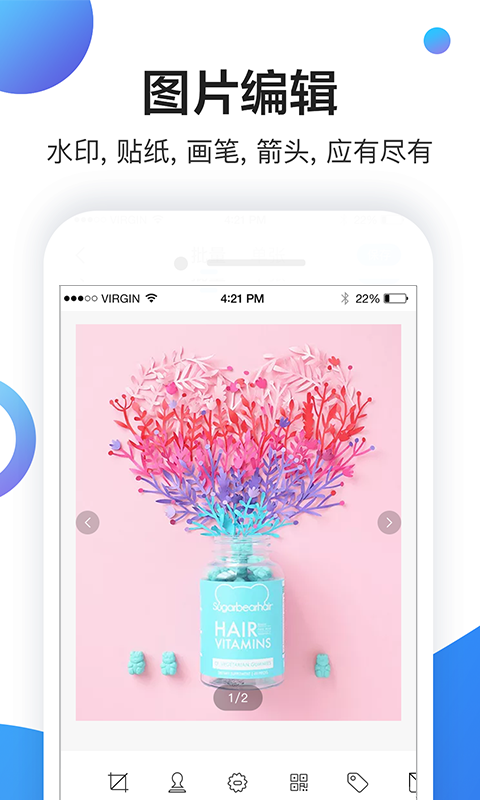 文字编辑:支持给图片添加各种风格的文字,让设计更加专注专业。