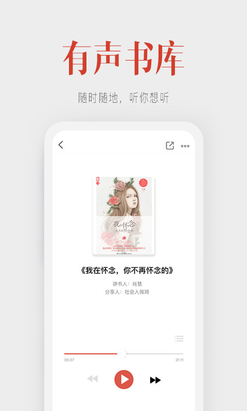 听说记拥有业内领先的正版有声书资源库,收录了上万部精品有声读物。从经典名著到网络热文,从悬疑推理到青春文学,各类题材应有尽有。专业主播倾情演绎,带来身临其境的听觉盛宴。无论你是开车、健身还是做家务,都能通过听书的方式享受阅读的乐趣。平台还支持离线下载功能,让你在没有网络的情况下也能畅听无阻。