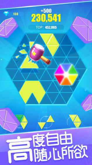 游戏内置了多种特色道具,为玩家提供更多策略选择。删除道具可以精准移除特定位置的三角形单元,帮助玩家调整布局;替换道具能够重新随机当前持有的图形组合,为陷入困境的玩家提供转机;最具威力的六角道具可以直接消除大片区域内的图形,还能与其他图形组合产生连锁反应,创造惊人的消除效果。合理运用这些道具,往往能在关键时刻扭转局势,带来意想不到的高分机会。