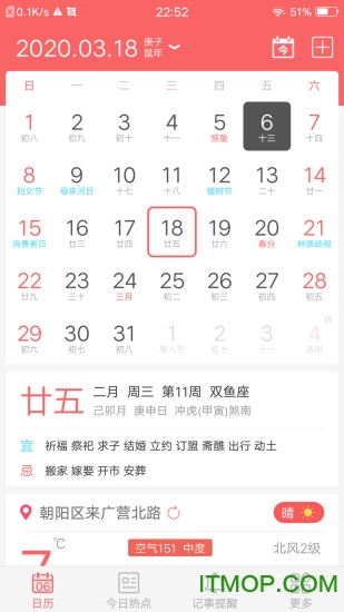这款日历软件以丰富的内容和喜庆的界面设计著称,几乎囊括了所有您需要的日历信息。每个节气都有醒目标注,农历日期、星期、天气状况和星座运势一目了然。每日更新的热点资讯不仅让您掌握时事动态,还提供养生知识和趣味新闻。精选的节日祝福语库包含各种场合的祝福内容,让您轻松表达心意。