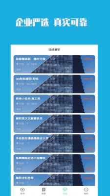 【企业严选真实可靠】平台建立了严格的审核机制,每家企业入驻都需要提供营业执照等资质证明,每个兼职岗位都会经过人工审核才能上线。平台还设有用户评价系统,让其他求职者的真实反馈帮助你辨别工作质量。工资发放由平台担保,确保用户按时足额获得报酬,彻底杜绝无良商家克扣工资的情况。