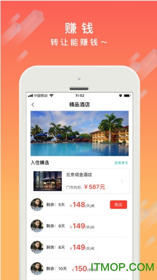 业务模式:酒店以优惠价格预售入住权,用户可灵活选择自住或转让获利。