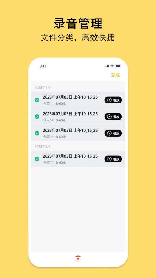 软件拥有强大的服务系统,确保录音过程稳定流畅。体验极其优质,无卡顿或延迟问题,让录音更加顺畅。软件体积小巧,占用存储空间少,适合各类设备使用。便携性极佳,用户可随时随地记录重要内容,满足移动办公和学习需求。