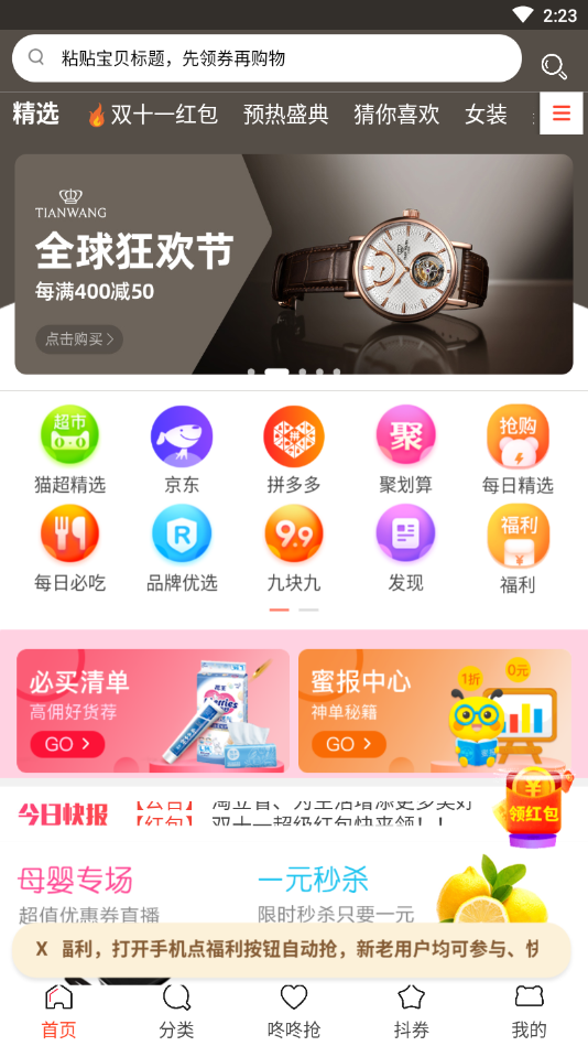 超值特惠,平台特别推出新人0元购专区,更有9块9包邮的爆款商品,聚划算活动天天有,让您享受前所未有的购物实惠。