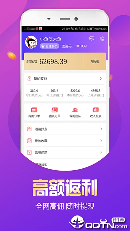 超级返:佣金闪电到账,快速提现!提现门槛低,到账速度快,让收益看得见摸得着。